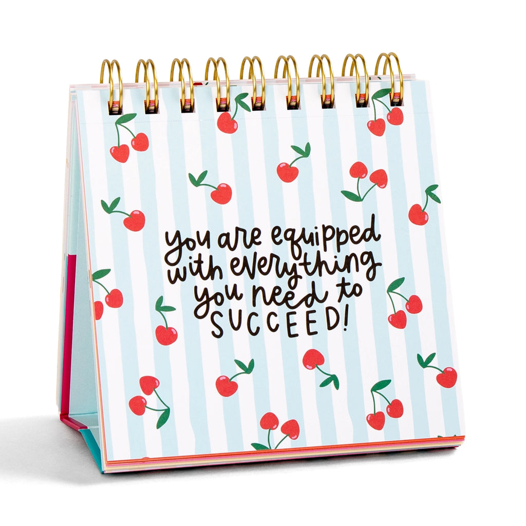 Elevate your daily routine with the 52 Weeks Affirmation Desk Flip Calendar, a refined companion designed to cultivate mindfulness and resilience throughout the year. Each week unveils a carefully curated affirmation, thoughtfully presented on elegantly gold-foiled pages that inspire confidence and self-compassion. The spiral-bound, free-standing easel design fits seamlessly into any professional or personal space—desk, nightstand, or classroom. Perforated pages allow for easy removal and display. At 5×5.5", this sophisticated calendar serves as both a functional organizer and a meaningful gift for those seeking daily encouragement and intentional living.
