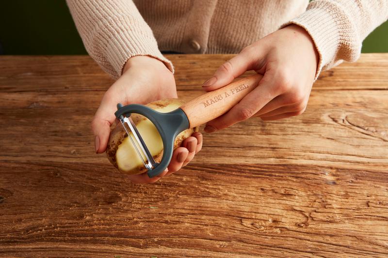 - Ergonomically designed wooden potato peeler